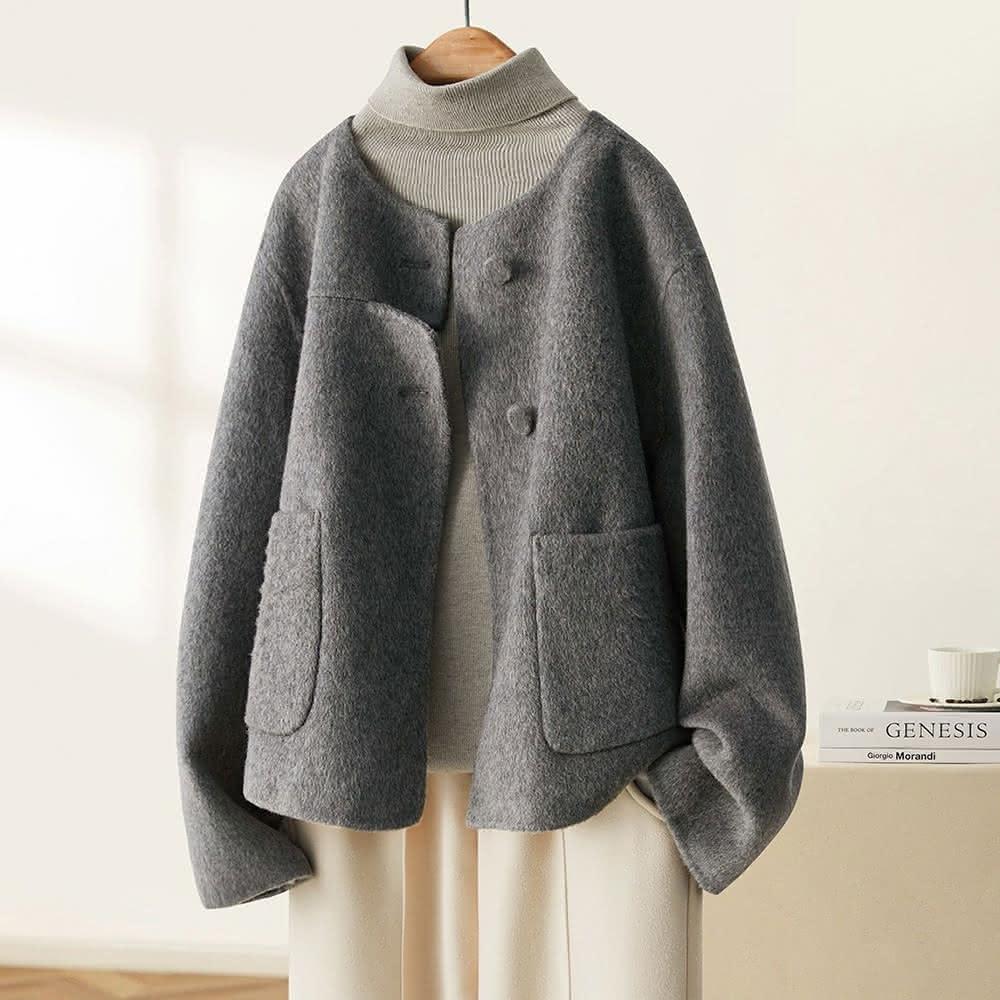 ROCU 若初小香風圓領長袖大衣女外套-深灰色-38661M-2XL可選