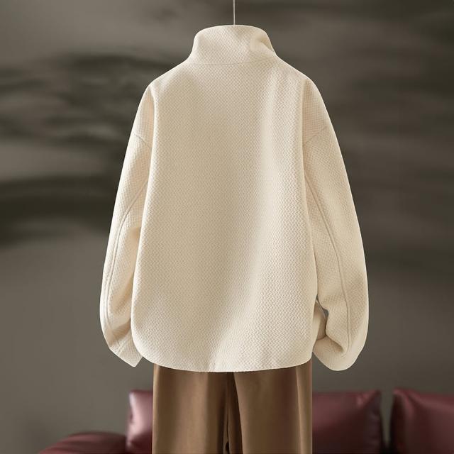 ROCU 若初純色小香風夾棉長袖短款拉鍊夾克外套女外套-米色-38482(M-3XL可選)