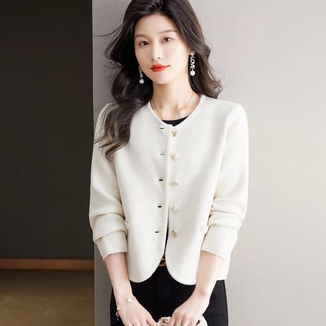 ROCU 若初小香風純色圓領短版針織單排釦長袖外套女外套-共2色-38894(F可選)