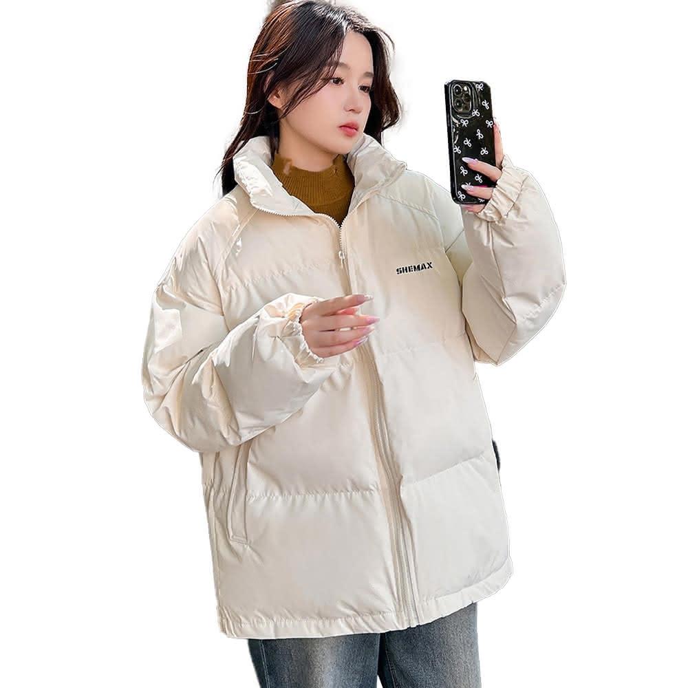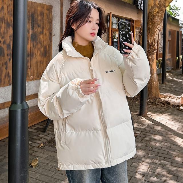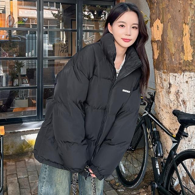 ROCU 若初韓版純色拉鍊口袋立領長袖插肩袖羽絨棉服外套女外套-共2色-39185(M-2XL可選)