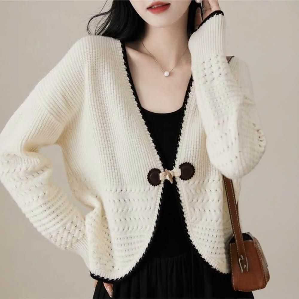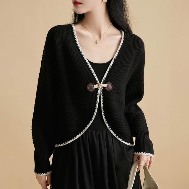 ROCU 若初小香風純色休閒百搭牛角扣外搭針織開衫外套女外套-共2色-10734(F可選)