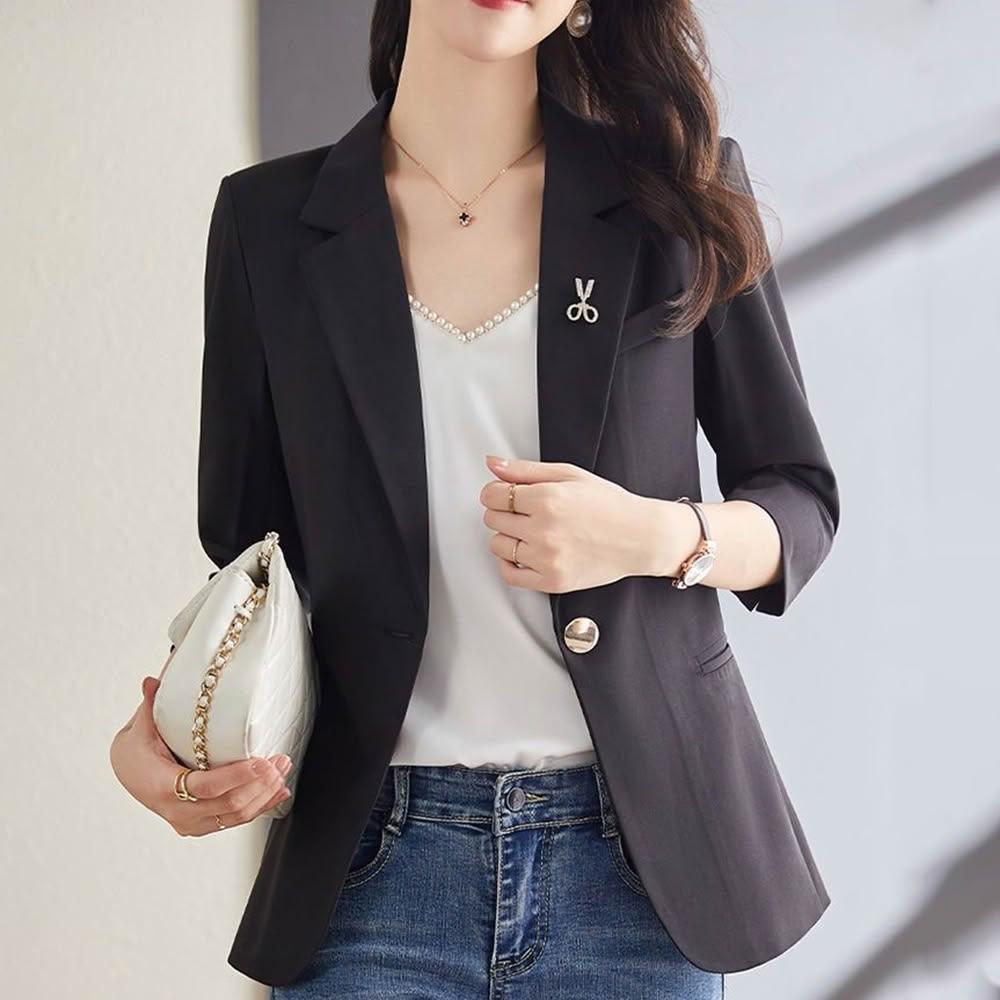 ROCU 若初夏季薄款收腰七分袖西裝外套-共5色-67141(M-2XL可選)