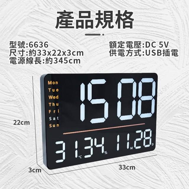 方形電子鐘 15吋LED電子數字掛鐘 萬年曆電子鐘USB插電 時鐘 掛鐘