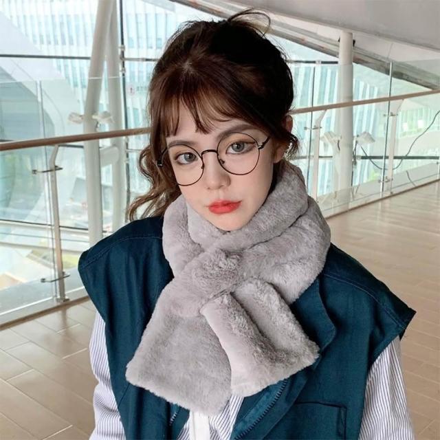 BOBOLIFE仿兔毛絨圍巾 保暖圍巾 絨毛圍巾 短圍巾 毛毛圍脖 毛領圍脖 交叉圍巾 保暖 圍巾 圍脖