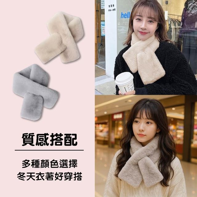 BOBOLIFE仿兔毛絨圍巾 保暖圍巾 絨毛圍巾 短圍巾 毛毛圍脖 毛領圍脖 交叉圍巾 保暖 圍巾 圍脖