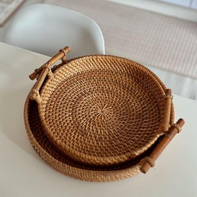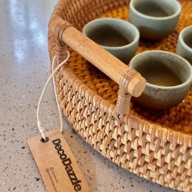 DecoDazzle印尼手工藤編圓形托盤