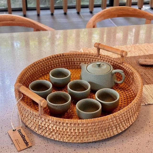 DecoDazzle印尼手工藤編圓形托盤