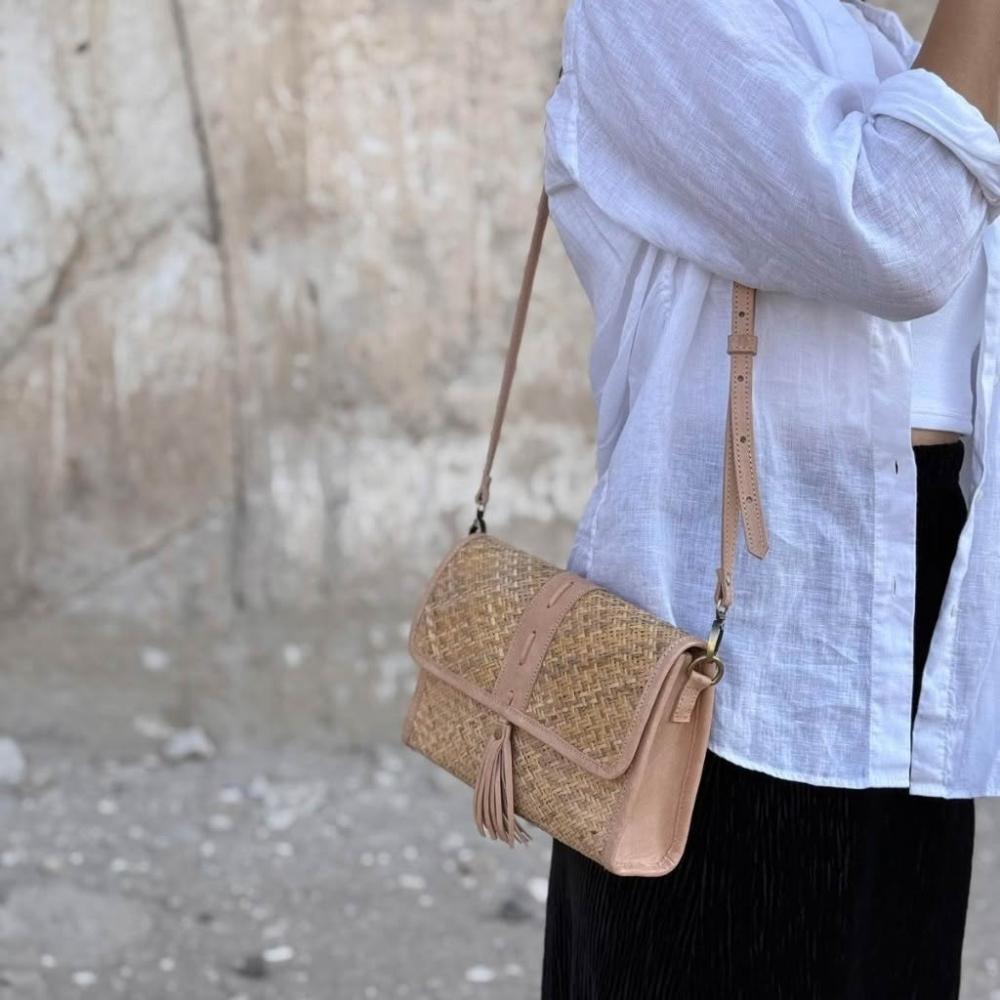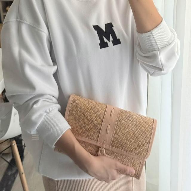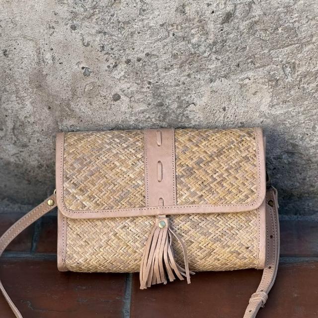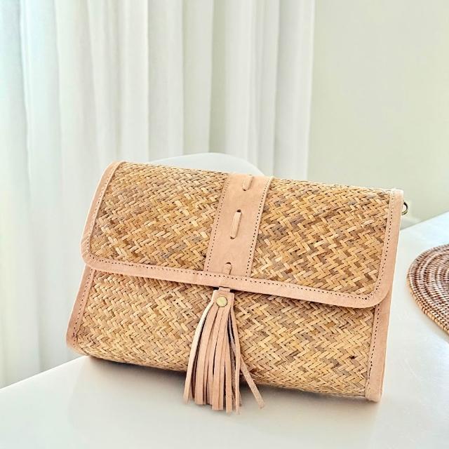 DecoDazzle印尼手工粉色真皮藤編信封包