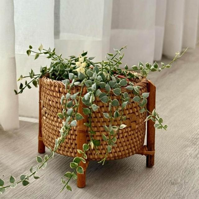 DecoDazzle印尼手工藤編圓形接木高腳籃 植物套盆 藤籃 藤編收納籃