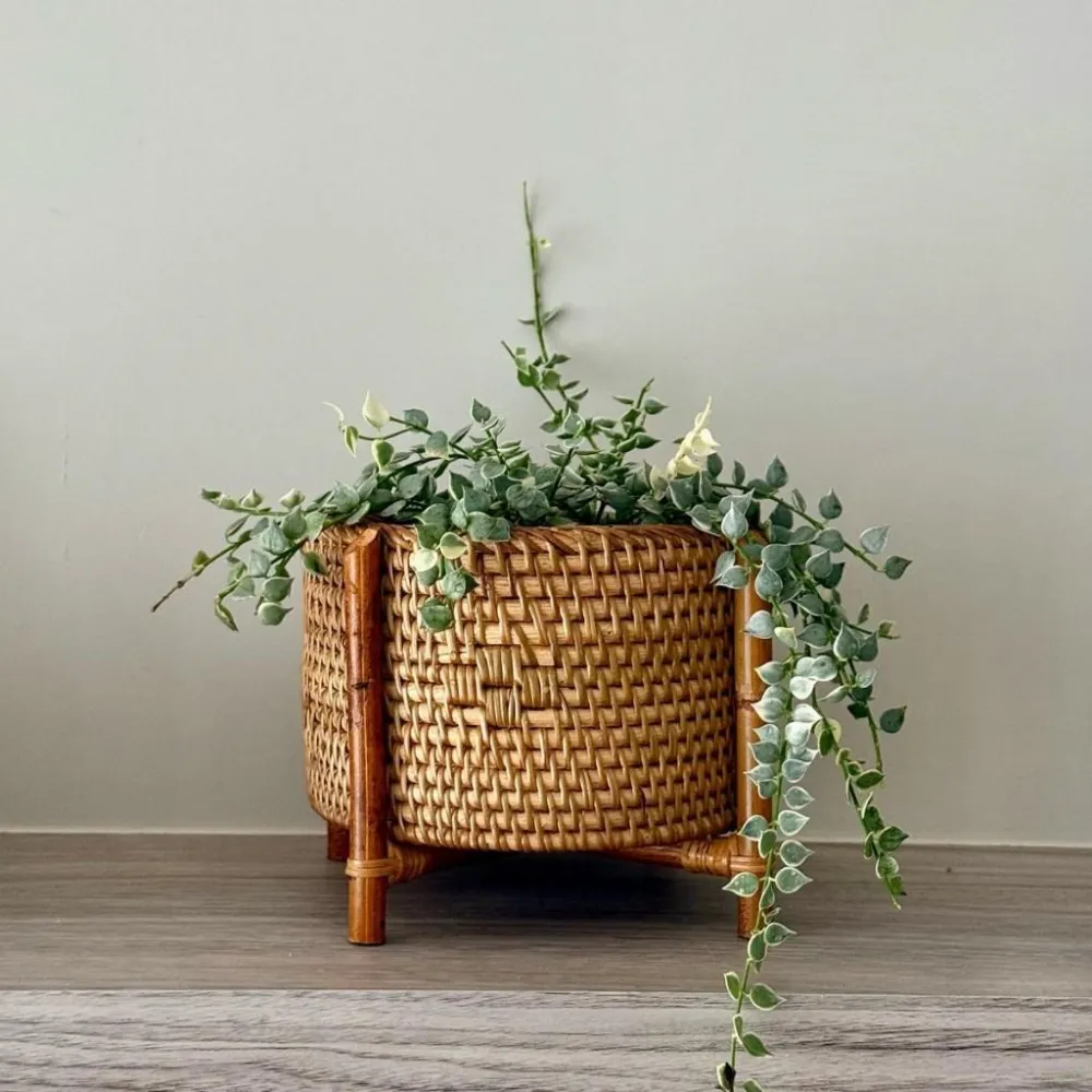 DecoDazzle印尼手工藤編圓形接木高腳籃 植物套盆 藤籃 藤編收納籃