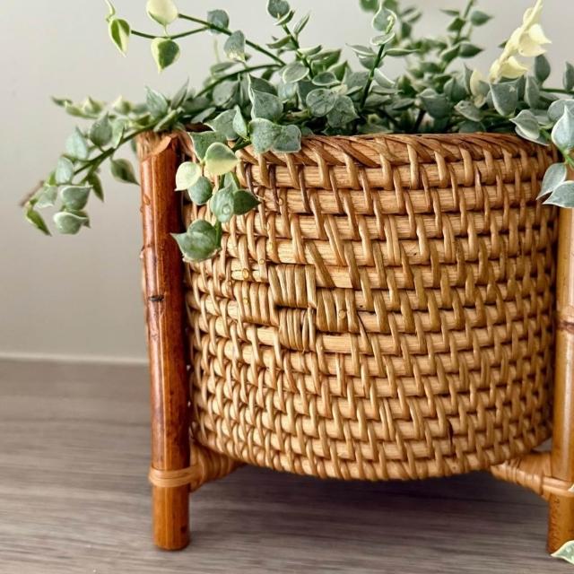 DecoDazzle印尼手工藤編圓形接木高腳籃 植物套盆 藤籃 藤編收納籃