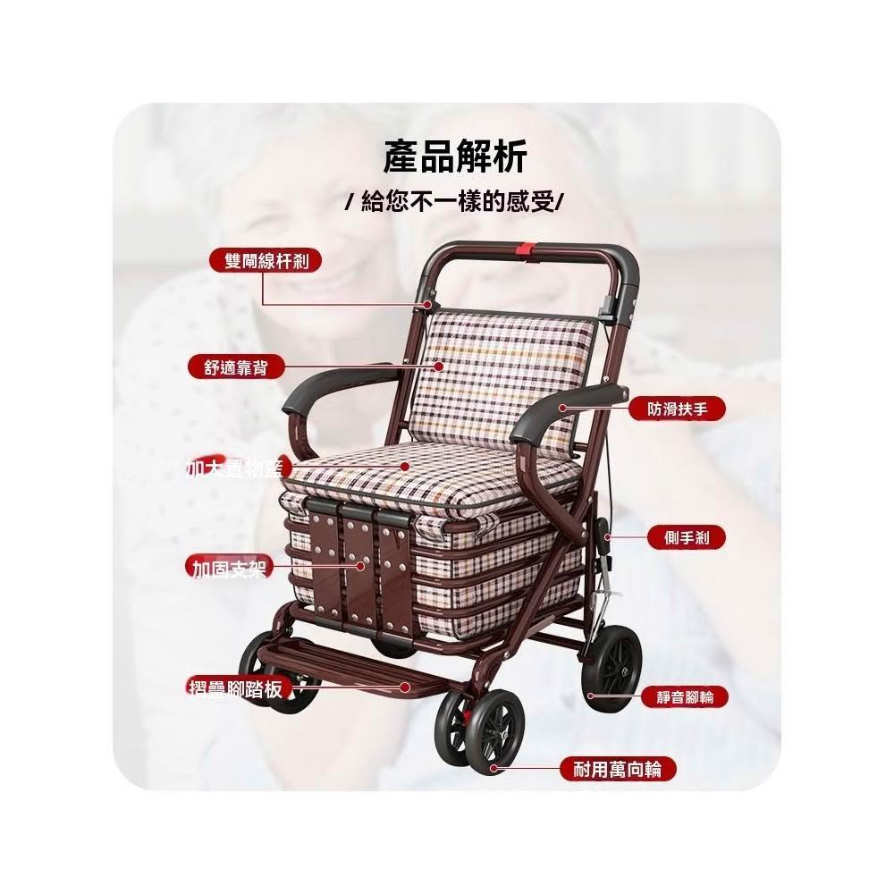 佳美多老人手推車 可推 可坐 代步買菜車 購物車 老年人 行走助行 便攜可折疊 小推車