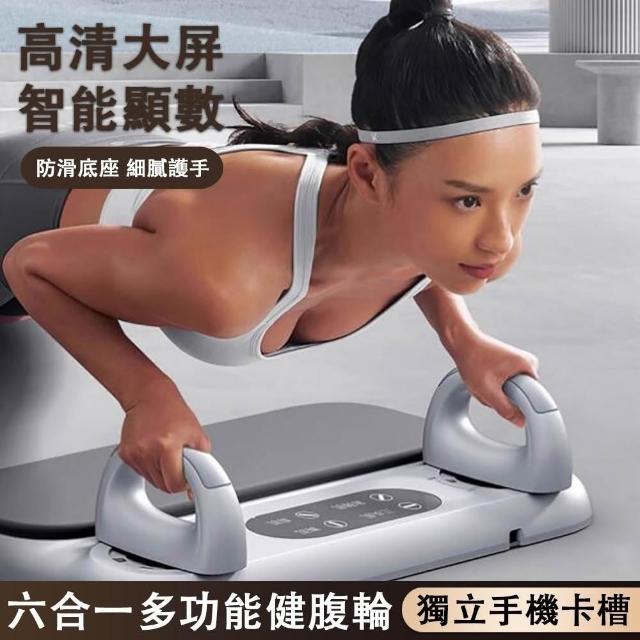 俯臥撐板 多功能健腹輪 回彈卷腹輪 拉力器 支撐板 模擬登山機 六合一 健身鍛煉(計時計數 可調阻力 防滑墊 加厚肘墊)