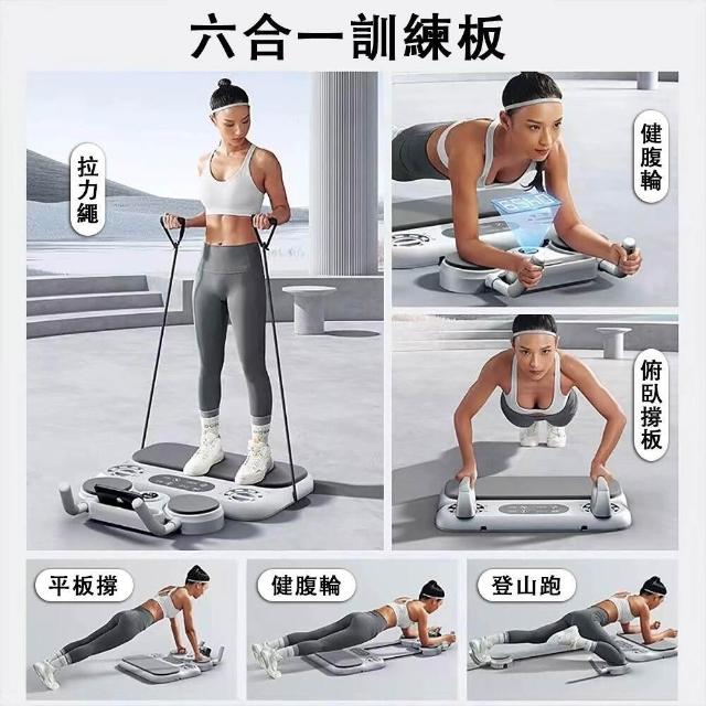 俯臥撐板 多功能健腹輪 回彈卷腹輪 拉力器 支撐板 模擬登山機 六合一 健身鍛煉(計時計數 可調阻力 防滑墊 加厚肘墊)
