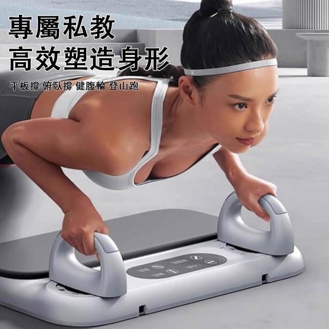俯臥撐板 多功能健腹輪 回彈卷腹輪 拉力器 支撐板 模擬登山機 六合一 健身鍛煉(計時計數 可調阻力 防滑墊 加厚肘墊)