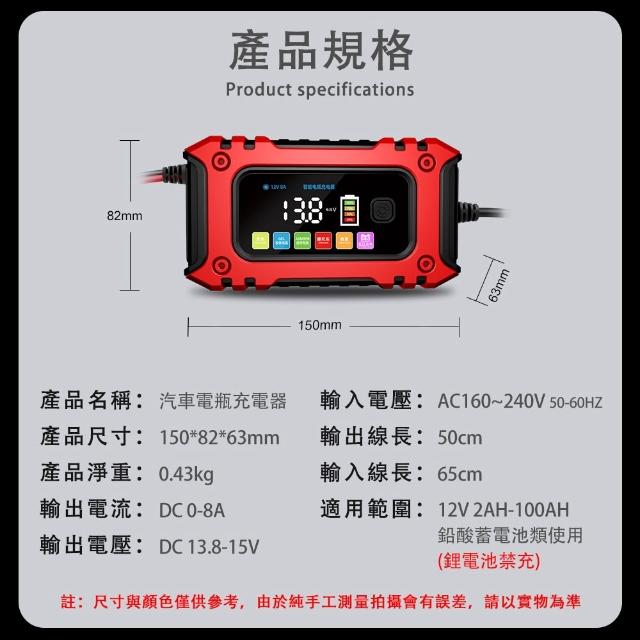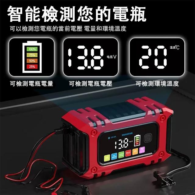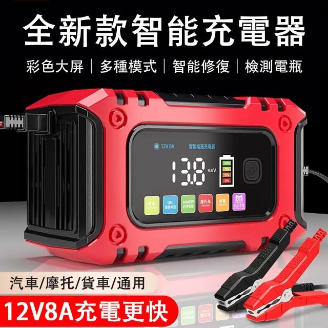 汽車電瓶充電器 智能修復電瓶充電機 摩托車蓄電池充電器 大功率電池充電機(低壓充電 智能檢測 一鍵修復 多種模式 數顯大屏)