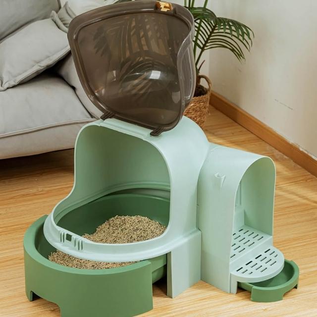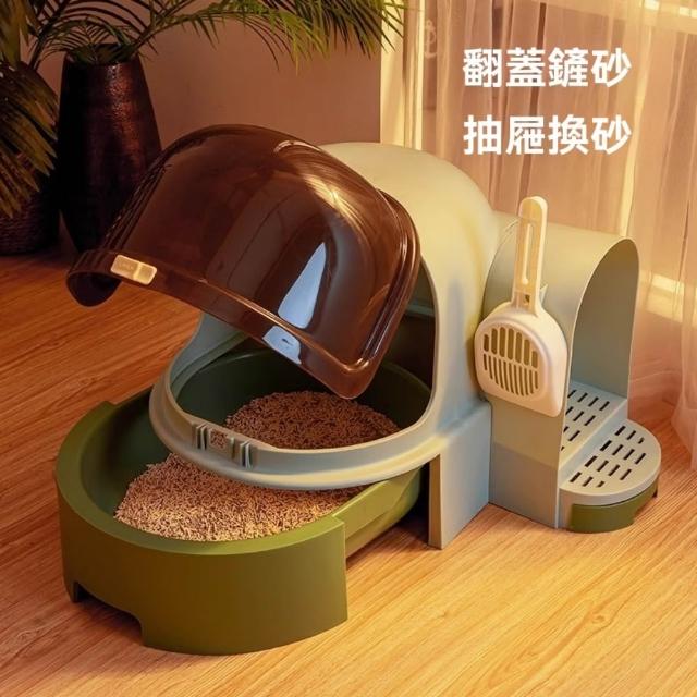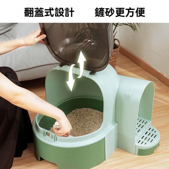 - 翻蓋式設計鏟砂更方便 貓砂盆