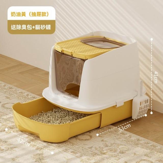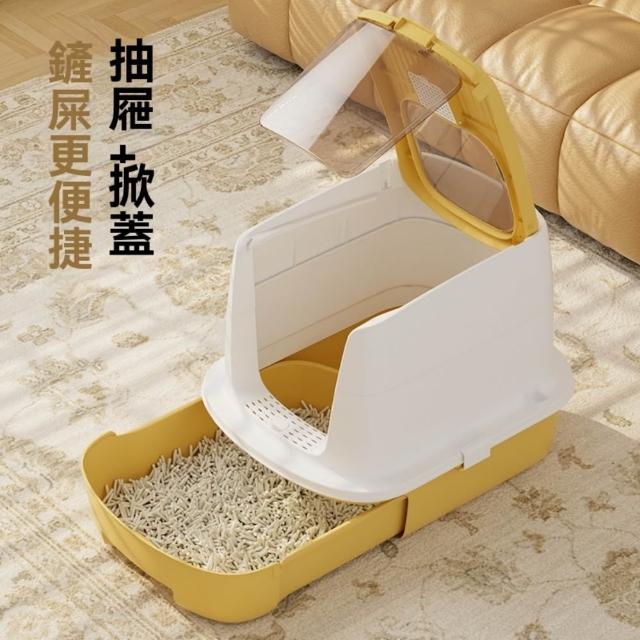 抽屜式 貓砂盆 防臭全封閉 貓廁所 超大號 防外濺 頂出貓沙屎盆子 不帶砂