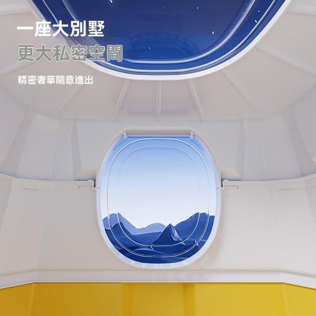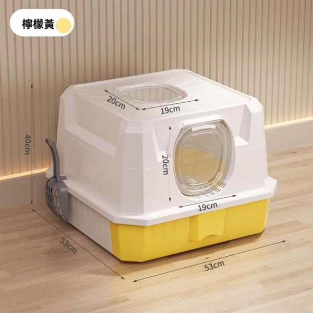 - 傾斜式頂板阻隔貓砂外濺 貓砂盆