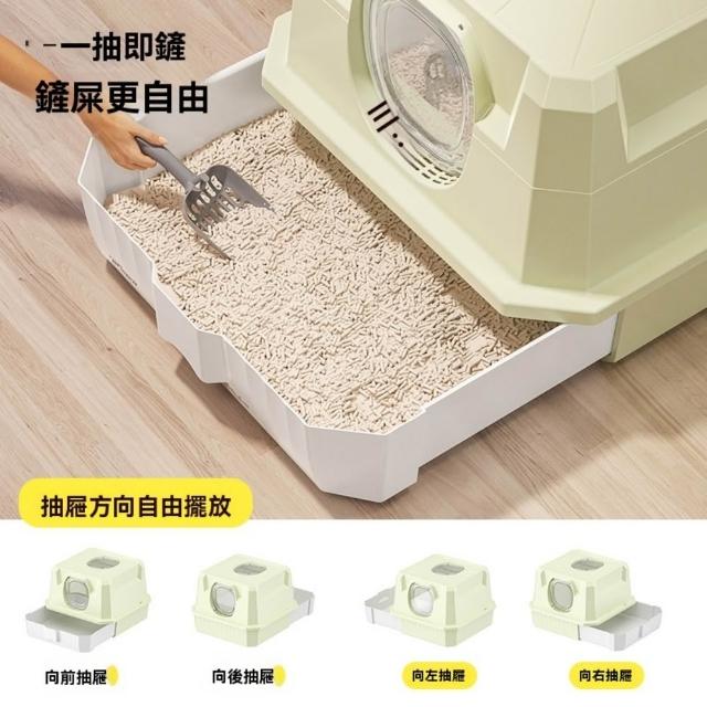 貓砂盆 全封閉式 超大號 防臭 抽屜式 防外濺 頂出式 貓沙盆特大號 貓廁所