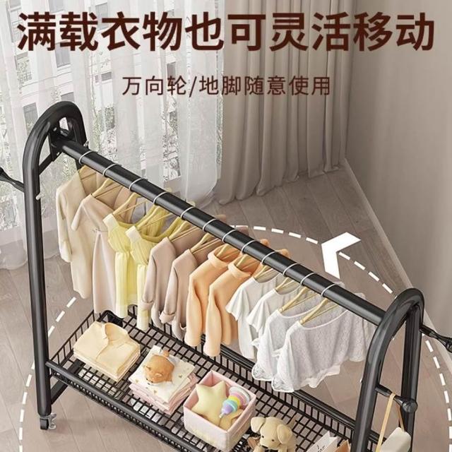 妙立 落地晾衣架 衣帽架 衣櫥 曬衣架 置物架 三角衣帽間 雙層網籃 加粗碳鋼框架 側面4掛鉤 多樣收納 滑輪款