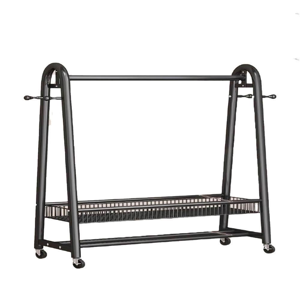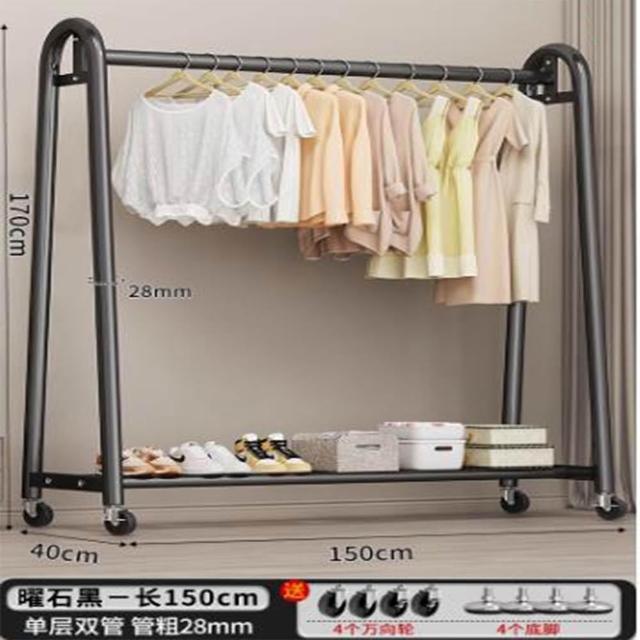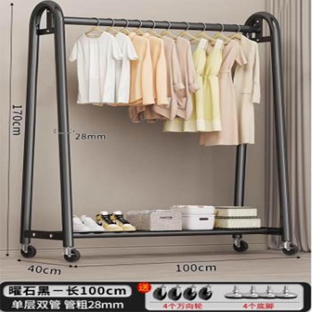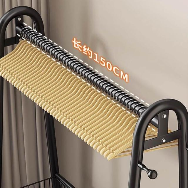 妙立 落地晾衣架 衣帽架 衣櫥 曬衣架 置物架 三角衣帽間 雙層網籃 加粗碳鋼框架 側面4掛鉤 多樣收納 滑輪款