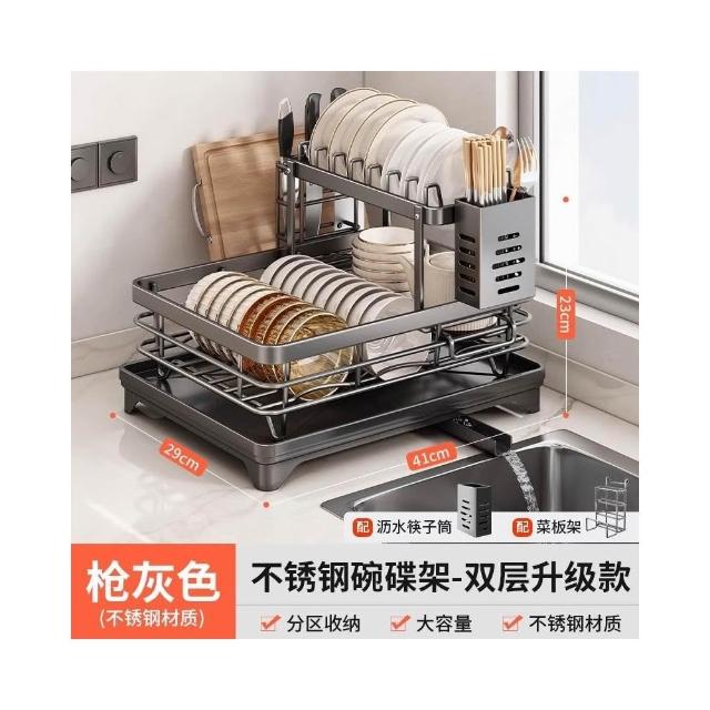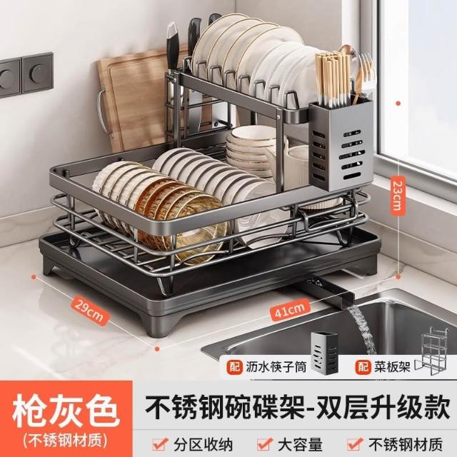 百佳現貨 清倉碗碟收納架 瀝水籃碗架 碗盤碗筷放碗盤子 雙層新款不鏽鋼廚房置物架