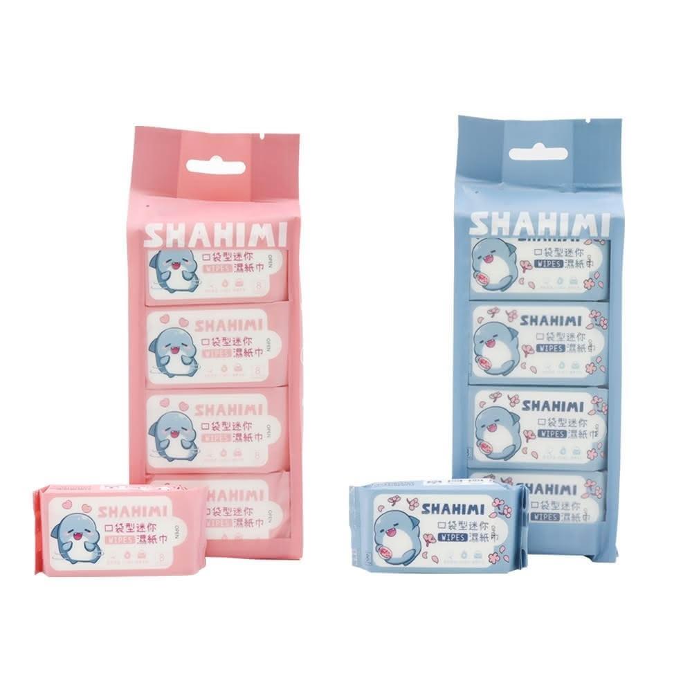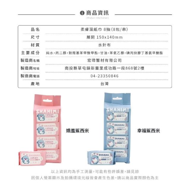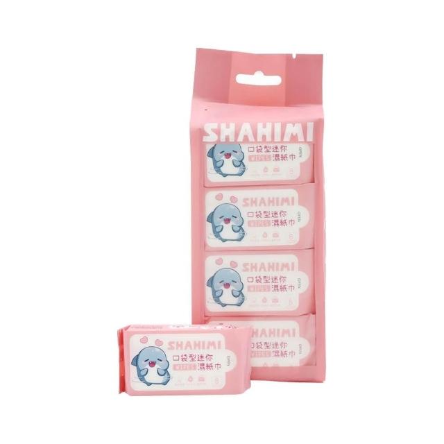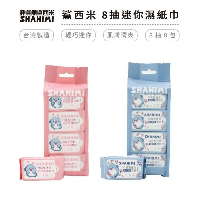 網狐家居胖鯊魚鯊西米-迷你柔膚濕紙巾(8抽x8包) 純水濕紙巾 RO純水 台灣製造 正版授權