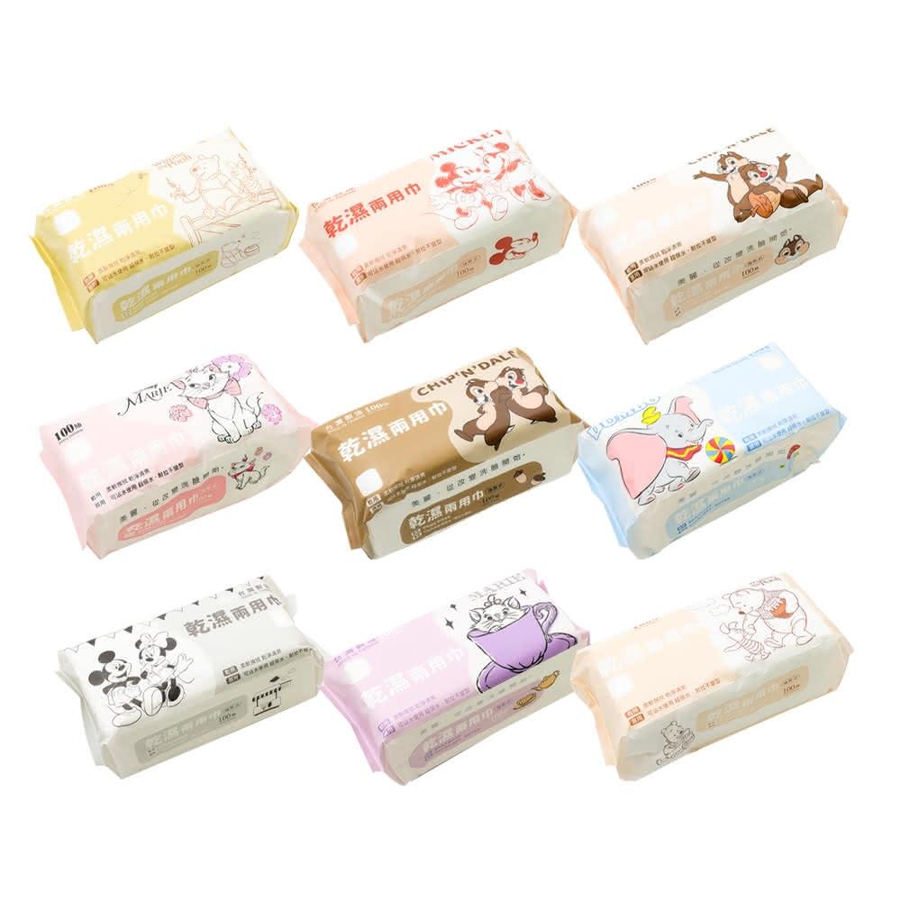 網狐家居迪士尼 Disney - 100抽 乾濕兩用洗臉巾 台灣製造 正版授權 米奇 米妮 小飛象 維尼 奇奇蒂蒂 瑪麗貓