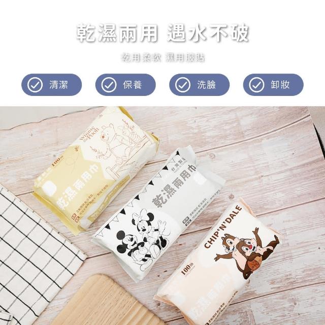 網狐家居迪士尼 Disney - 100抽 乾濕兩用洗臉巾 台灣製造 正版授權 米奇 米妮 小飛象 維尼 奇奇蒂蒂 瑪麗貓