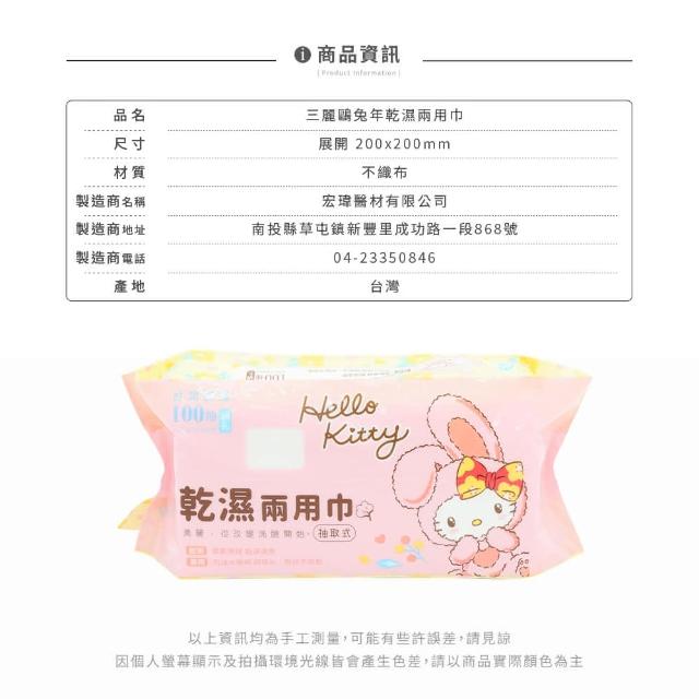 網狐家居三麗鷗 - Hello Kitty兔兔 100抽乾濕兩用洗臉巾 洗臉巾 擦臉巾