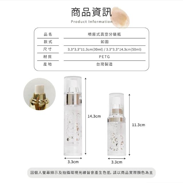網狐家居迪士尼 Disney - 真空分裝噴霧瓶(30ml/50ml) I 台灣製造 分裝瓶 按壓瓶 防疫 金色 銀色 米奇 米妮 小熊維尼 史迪奇 跳跳虎