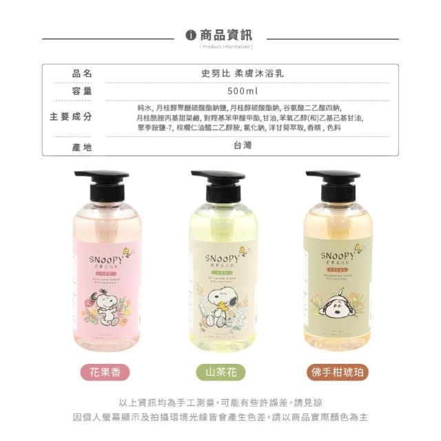 網狐家居史努比 Snoopy - 柔膚沐浴乳 I 台灣製造 沐浴乳 山茶花 花果香 佛手柑琥珀