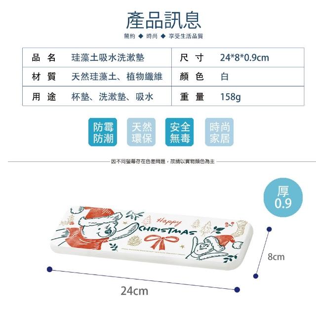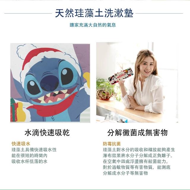 網狐家居迪士尼 Disney - 聖誕節系列 硬式珪藻土洗漱墊(24x8x0.9cm) I 台灣製造 正版授權 硅藻土 杯墊 吸水 防潮 三眼怪 維尼 史迪奇 叉奇