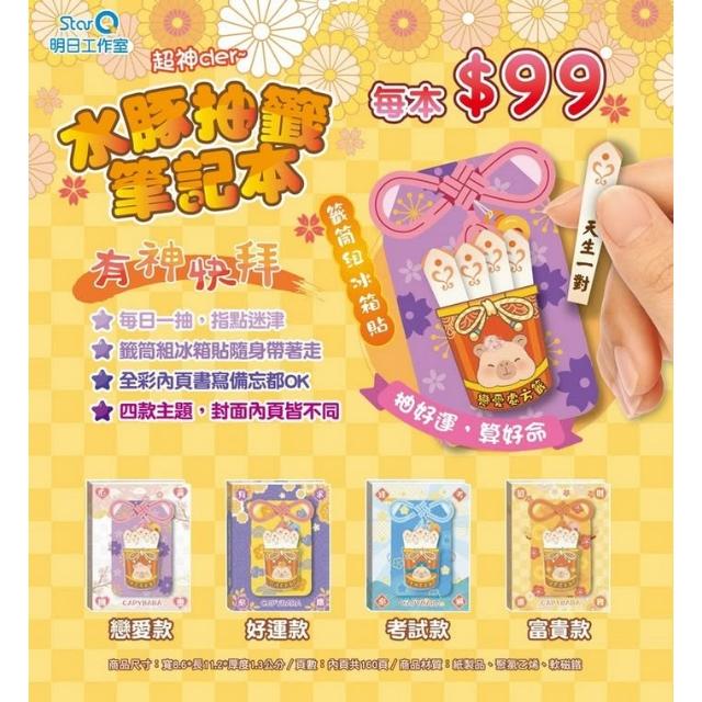 明日工作室水豚抽籤筆記本(戀愛、好運、考試、富貴 4款)