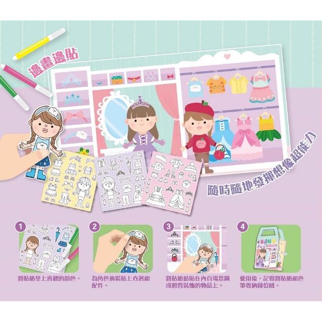 明日工作室我的著色貼紙(附著色貼紙3組、色筆6支) (時尚衣櫥、海灘派對、午茶時光、奇幻仙子)