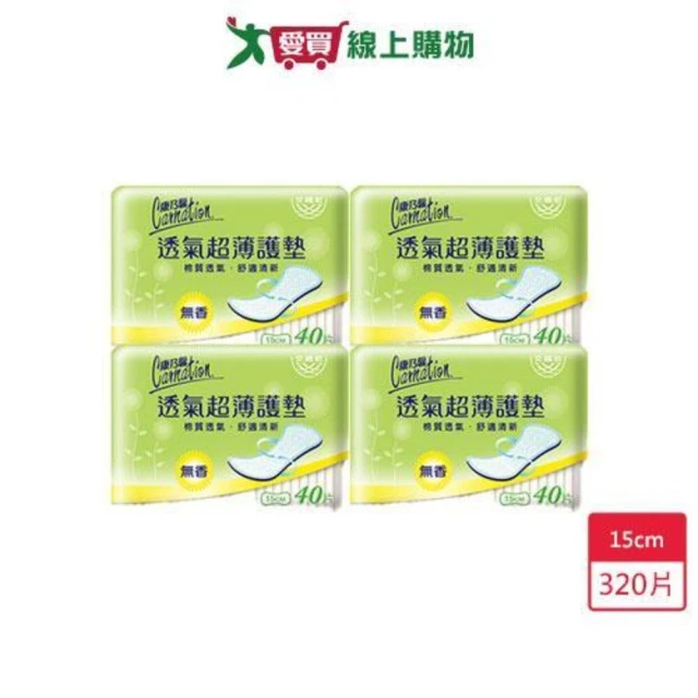 康乃馨超薄透氣護墊 無香15cm x 40片 x 2包 x 4入共320片 愛買