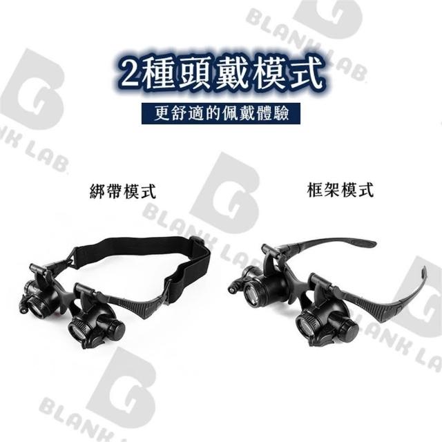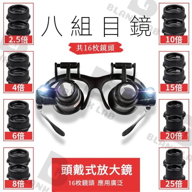 頭戴式放大鏡 高清顯微鏡 高清雙眼式 修錶 古董/珠寶鑒定 帶LED燈 8組目鏡(2.5~25倍)