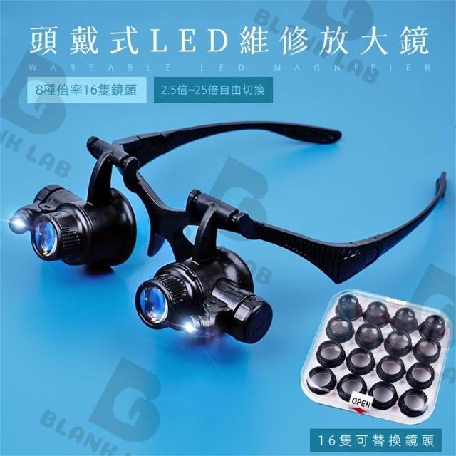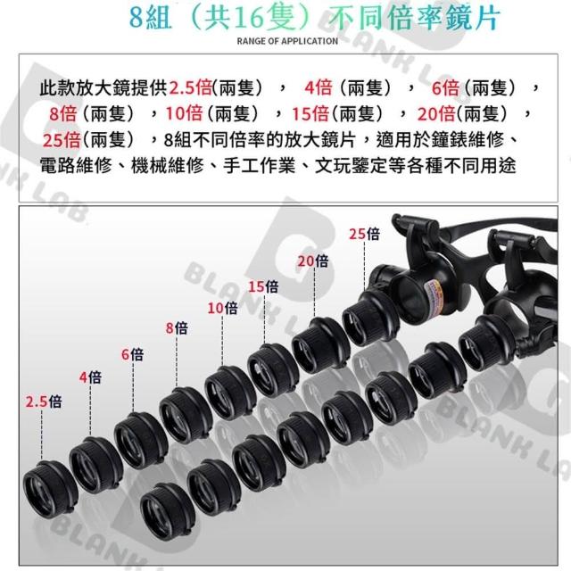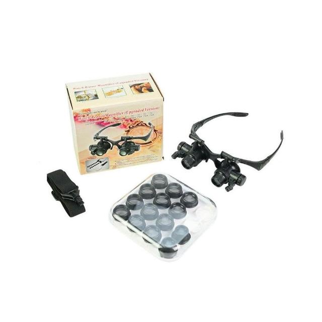 頭戴式放大鏡 高清顯微鏡 高清雙眼式 修錶 古董/珠寶鑒定 帶LED燈 8組目鏡(2.5~25倍)