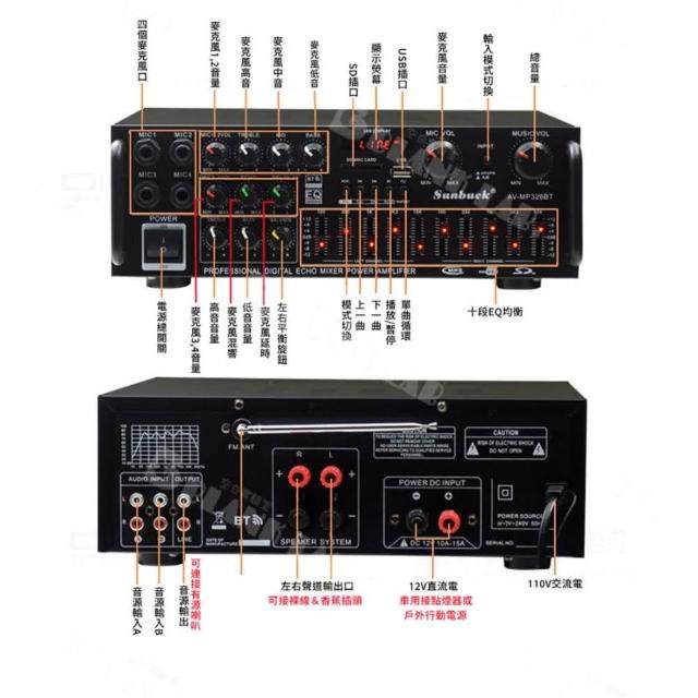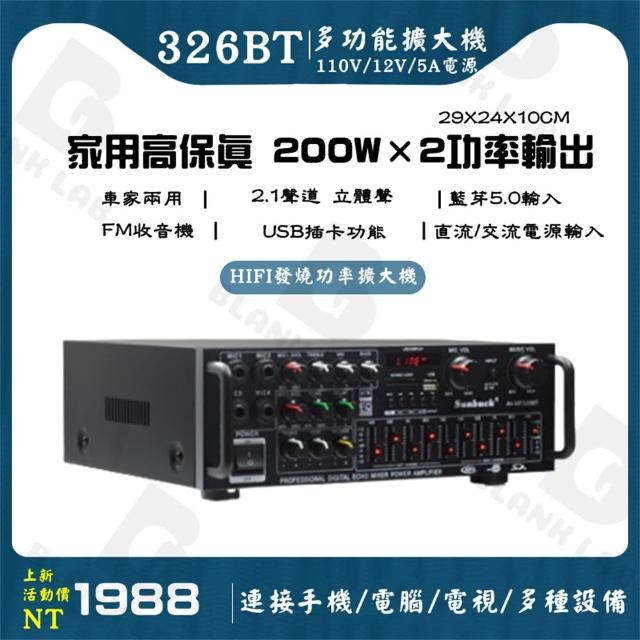 326BT 擴大機 擴大器 2.1聲道 200W+200W功率 麥克風ECHO 藍芽/USB/FM台灣現貨+保固
