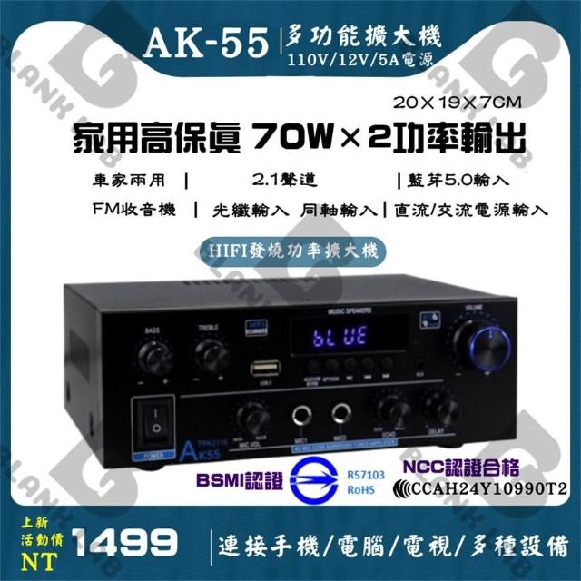 2.1聲道 70W*70W功率 車家兩用 喇叭音響擴大器 綜合擴大機 BSMI NCC雙認證(AK55)