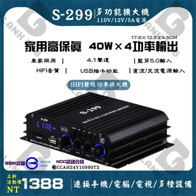 4.1聲道 40W*4功率 車家兩用 喇叭音響擴大器 環繞擴大機 BSMI NCC雙認證(S-299 )