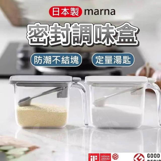 MARNA日本370ml/600ml防潮調味盒 附量匙 (密封佳 單手開 按壓式 調味盒 鹽巴盒 鹽巴罐 密封調味盒 調味罐)