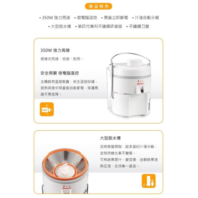 貴夫人Ladyship 貴夫人 果菜榨汁研磨果汁機(CL-010)蔬果汁 磨豆漿 磨米漿,汁渣分離