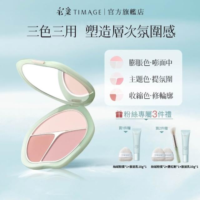 TIMAGE 彩棠爭青流玉三色腮紅盤 送絲絨粉撲*1+保濕妝前乳10g*1(下單2件贈腮紅刷*1) 膨脹色自然修容紫杏色 彩棠官方旗艦店