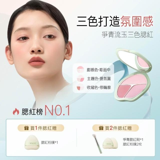 TIMAGE 彩棠爭青流玉三色腮紅盤 送絲絨粉撲*1+保濕妝前乳10g*1(下單2件贈腮紅刷*1) 膨脹色自然修容紫杏色 彩棠官方旗艦店