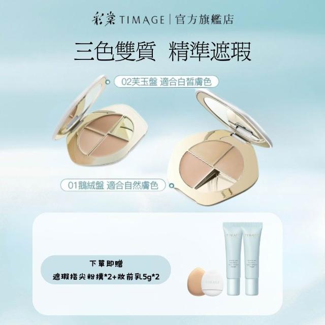 TIMAGE 彩棠潤玉無暇三色遮瑕膏 5g 送指尖粉撲*2(一袋)+保濕妝前乳5g*2(遮蓋斑點淚溝黑眼圈校色服貼定膚 彩棠官方旗艦店)