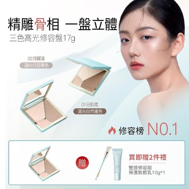 TIMAGE 彩棠浮光掠影高光修容粉盤 送雙頭修容刷*1 + 保濕妝前乳10g*1 (啞光高光打亮鼻影修容陰影臉部立體 彩棠官方旗艦店)