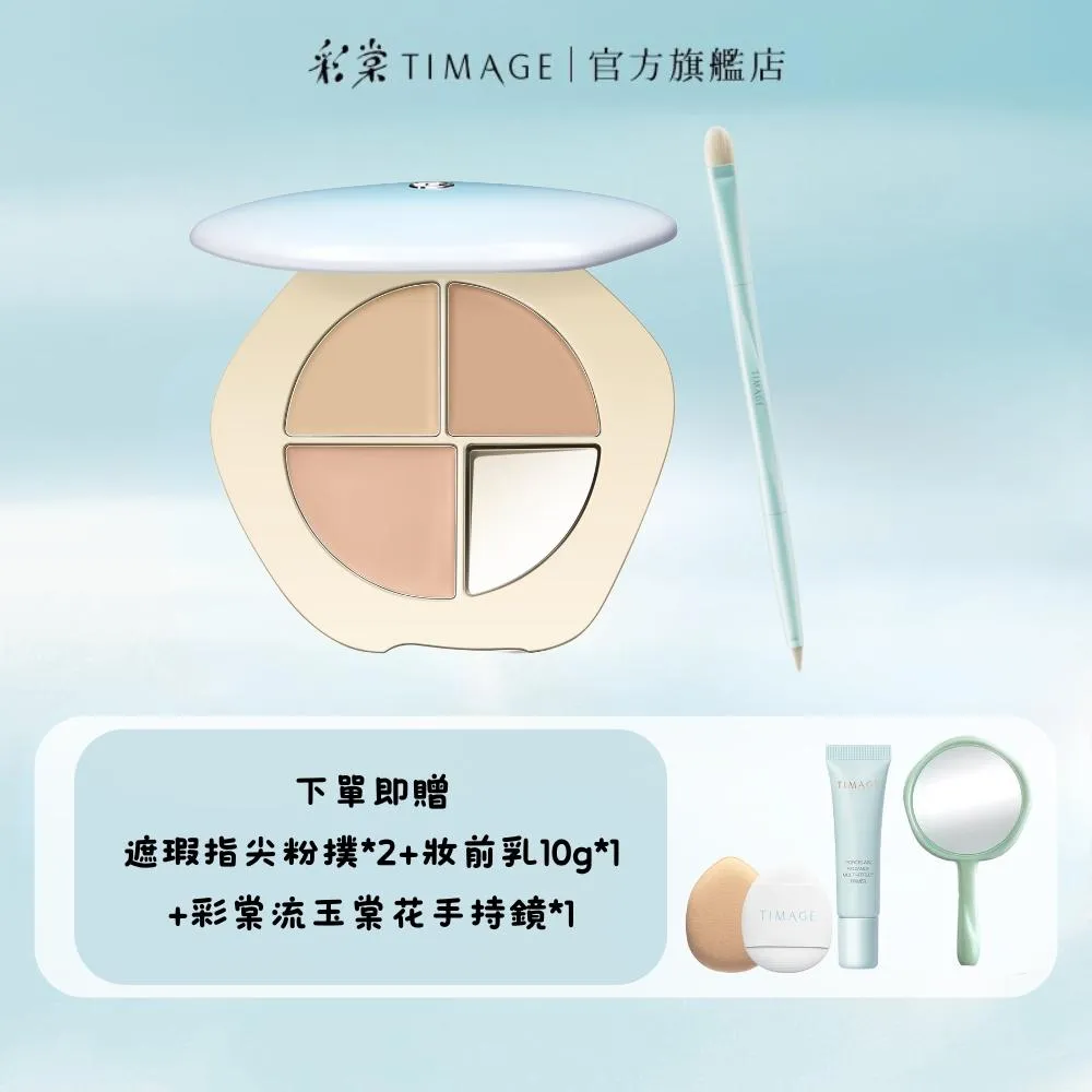 TIMAGE 彩棠遮瑕套組 潤玉無暇三色遮瑕膏 + 精細無痕雙頭遮瑕刷(贈遮瑕指尖粉撲*2(一袋)+保濕妝前乳10g*1+手持鏡*1)