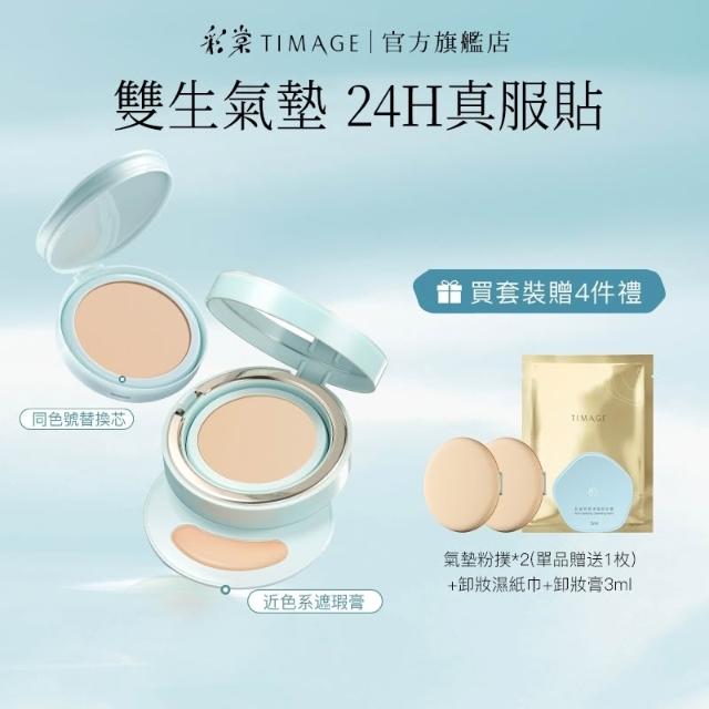 TIMAGE 彩棠雙生氣墊(14g氣墊芯+1g遮瑕膏) 附氣墊替換芯*1+氣墊粉撲*2+卸妝巾*2 彩棠官方旗艦店